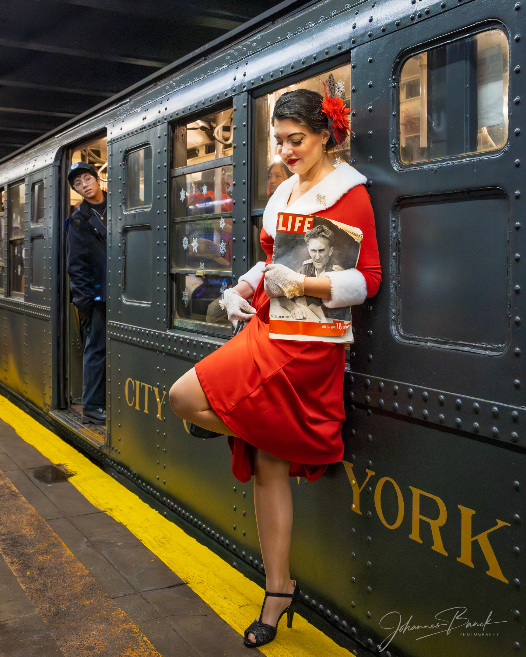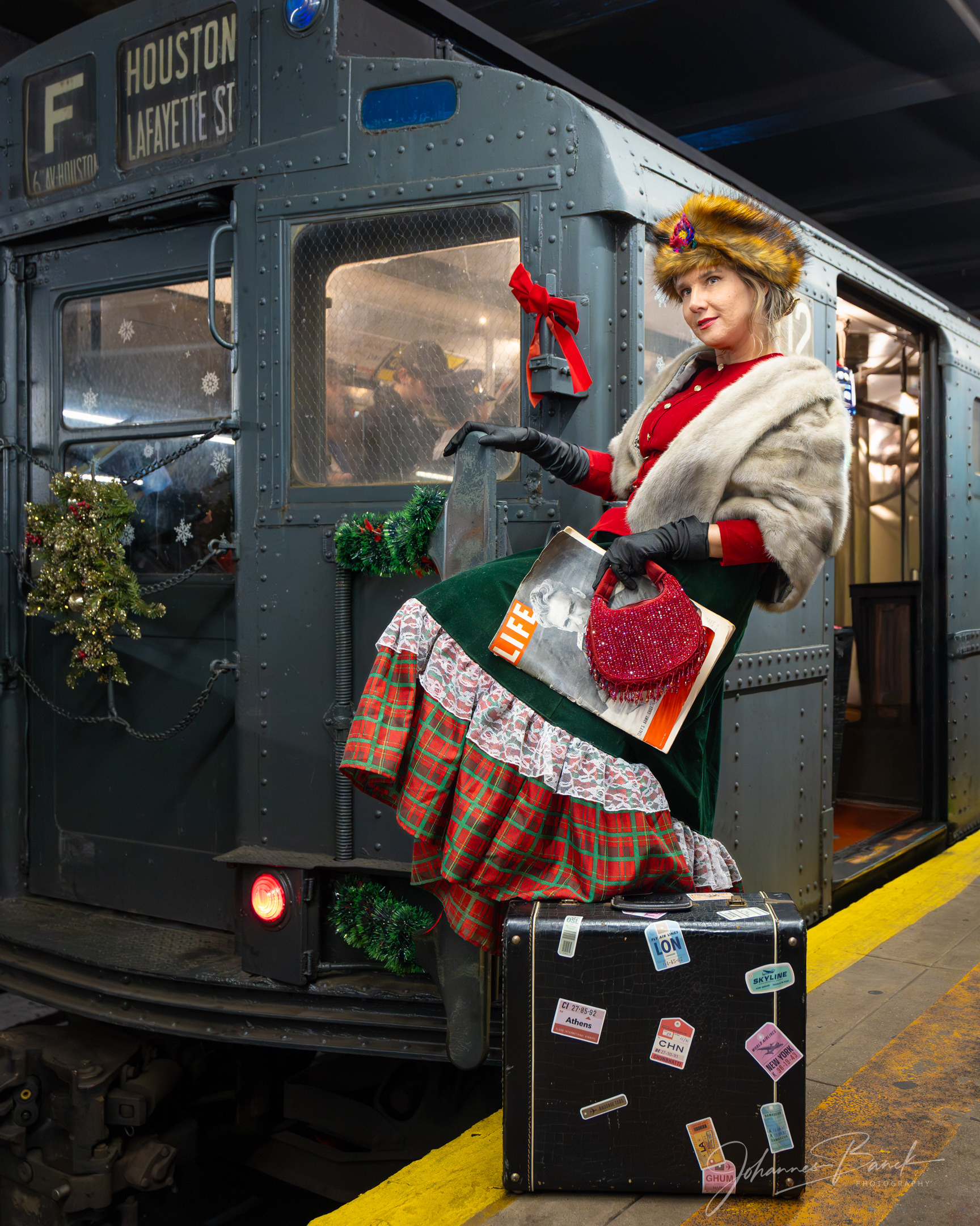 Each Sunday in December, the New York City historical subway ride transforms the system into a living time capsule, offering a rare backdrop for photographing models in period-inspired scenes. Vintage subway cars, classic signage, and authentic details create a setting that feels untouched by time, allowing images to echo the elegance and character of an earlier New York.
